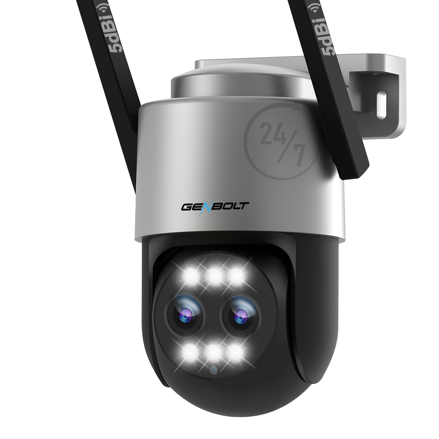 GENBOLT PTZ WiFi Security Camera Outdoor, CCTV Home Surveillance Camera with Dual View, Dual lens IP Camera with Color Night, Auto Tracking Humanoid Detection [DC&PoE]